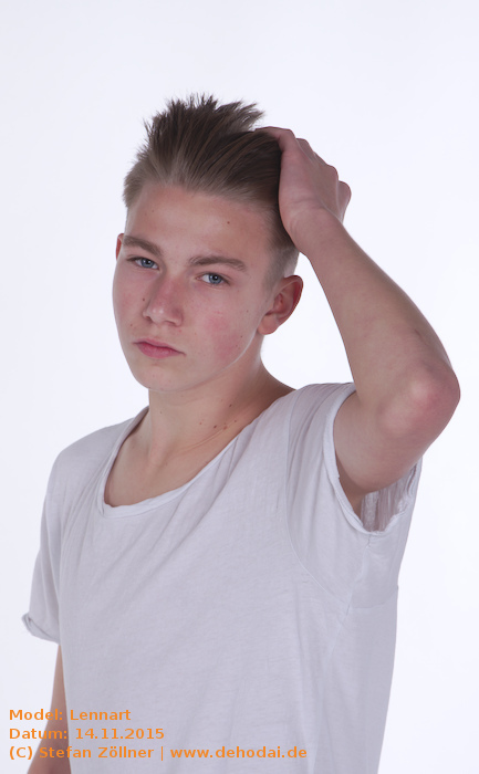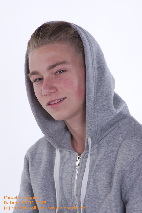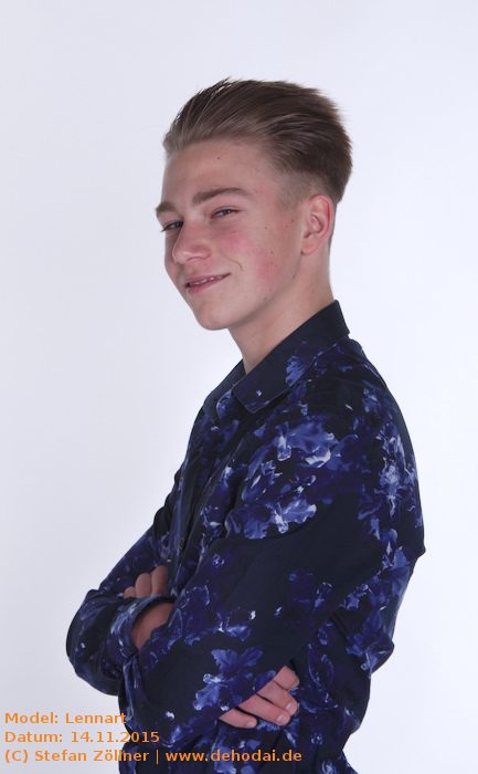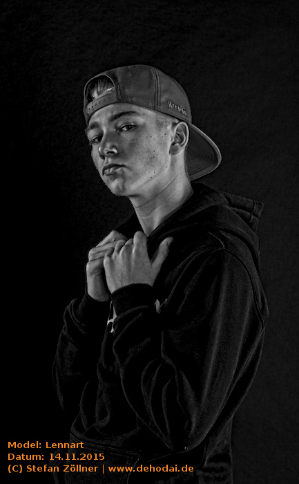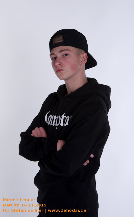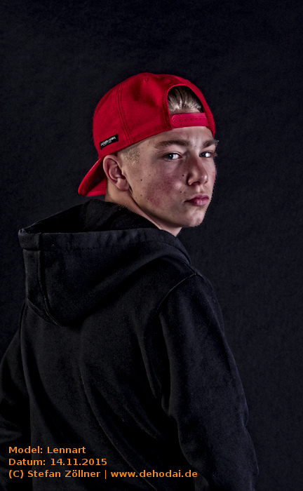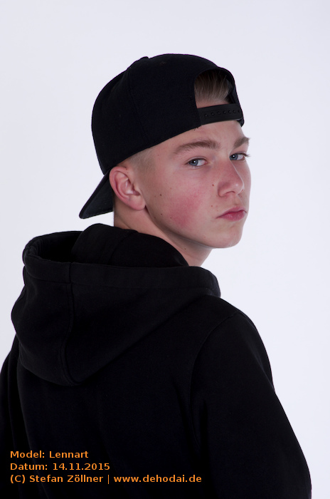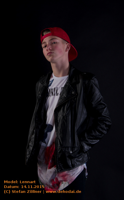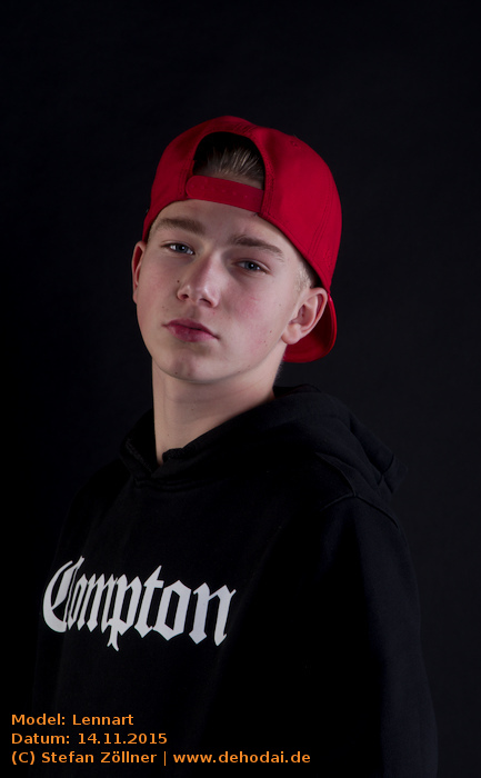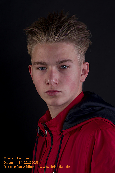 Lennart hatte sich mit Posing-Übungen auf das Shooting vorbereitet, sodass ich kaum Anweisungen geben musste. Eines habe ich beim Shooting gelernt: Helle und gleichmäßig ausgeleuchtete Bilder gelten bei Jugendlichen als „uncool“. Cool sind schattige Bilder, noch cooler ist dunkle Kleidung vor dunklem Hintergrund. Lennarts Vater saß schräg hinter mir auf einem Sofa, und fing irgendwann an, Witze zu erzählen. Leider habe ich mir keinen einzigen gemerkt. Die Stimmung bei dem Shooting war so gut, dass wir uns schon jetzt für den Sommer/Spätsommer 2016 für ein erneutes Shooting, ggf. auch Outdoor, verabredet haben. Hier mal eine Bilderauswahl: